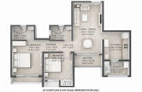 As you enter the apartment, you are welcomed into an expansive living room with large windows offering panoramic views. Living rooms have dedicated spaces for a dining area, a TV unit with a sitting area for comfort. The bedrooms, kitchens, and washrooms are adorned with high-quality fittings and sanitaryware.