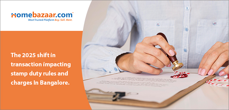 The stamp duty in Bangalore is an obligatory tax charged by the government of Karnataka on property transactions. Following the Registration (Karnataka Amendment) Act of 2024, which took full effect in late 2025, transaction costs have shifted. It legitimises the legal ownership of property and brings revenue to the state. The value, location, and type of the property determine the value of the stamp duty.