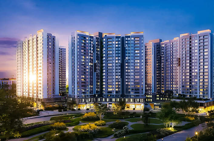 There are spacious 3, 3.5, 4, and 5 BHK apartments in Rustomjee Balmoral Golf Links.